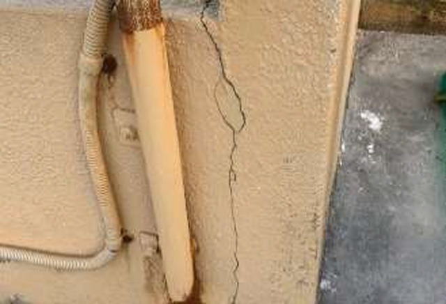 外壁やコンクリートにひび割れが生じる現象です。放置すると雨水が侵入し劣化や腐食につながります。