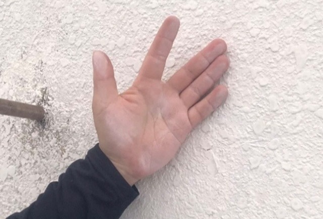 外壁を触ると白い粉がつく現象です。防水性や耐久性の低下を示しています。