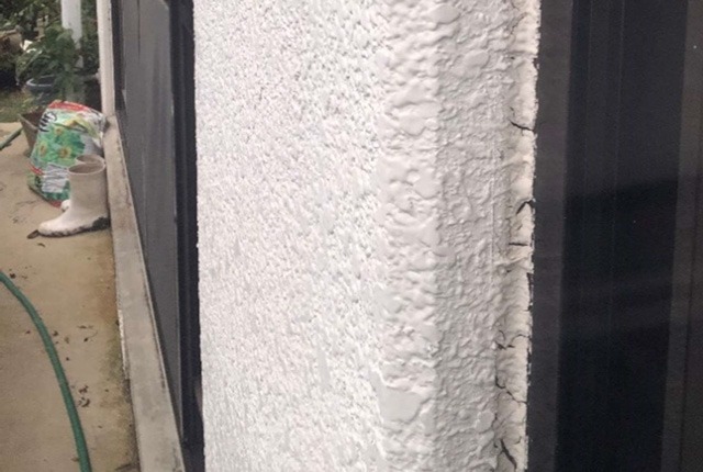 目地部分や窓枠まわりなど、耐久性が弱く雨漏りしやすい部分には、弾性のあるコーキング材を打ちます。 コーキング材を打つ前に、下地に専用ボンドを塗布することで、コーキング材の密着性を上げています。
